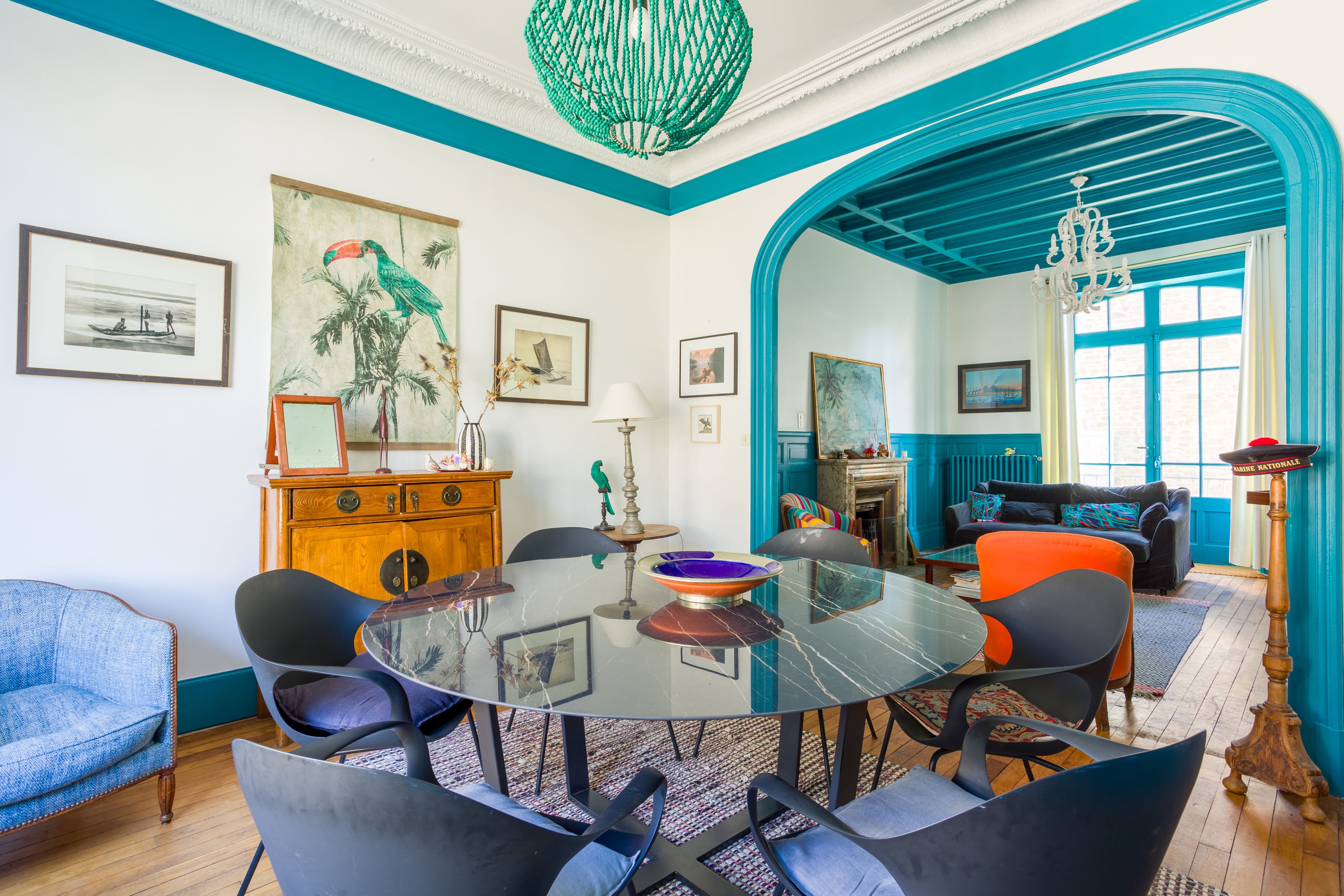 VENDUE PAR BRETEUIL - Élégante villa traditionnelle idéalement située à proximité immédiate de la plage du Sillon et des Thermes Marins. Distribuée sur 4 niveaux, cette maison ancienne de 250m² habitables (283m² au sol) bénéficie d'un emplacement unique, de beaux volumes et d'un agréable jardin exposé sud à l'abri des regards et des vents dominants. Entrée, vaste séjour-salle à manger traversant, cuisine séparée équipé et bureau. Au 1er étage : 3 chambres dont une avec balcon vue mer et salle d'eau. Au 2ème étage : 3 chambres, salle de bains et salle d'eau. Grenier aménagé. En rez-de-jardin avec entrée indépendante : pièce de vie (possibilité profession libérale) avec coin cuisine et salle d'eau. Enfin grand garage.